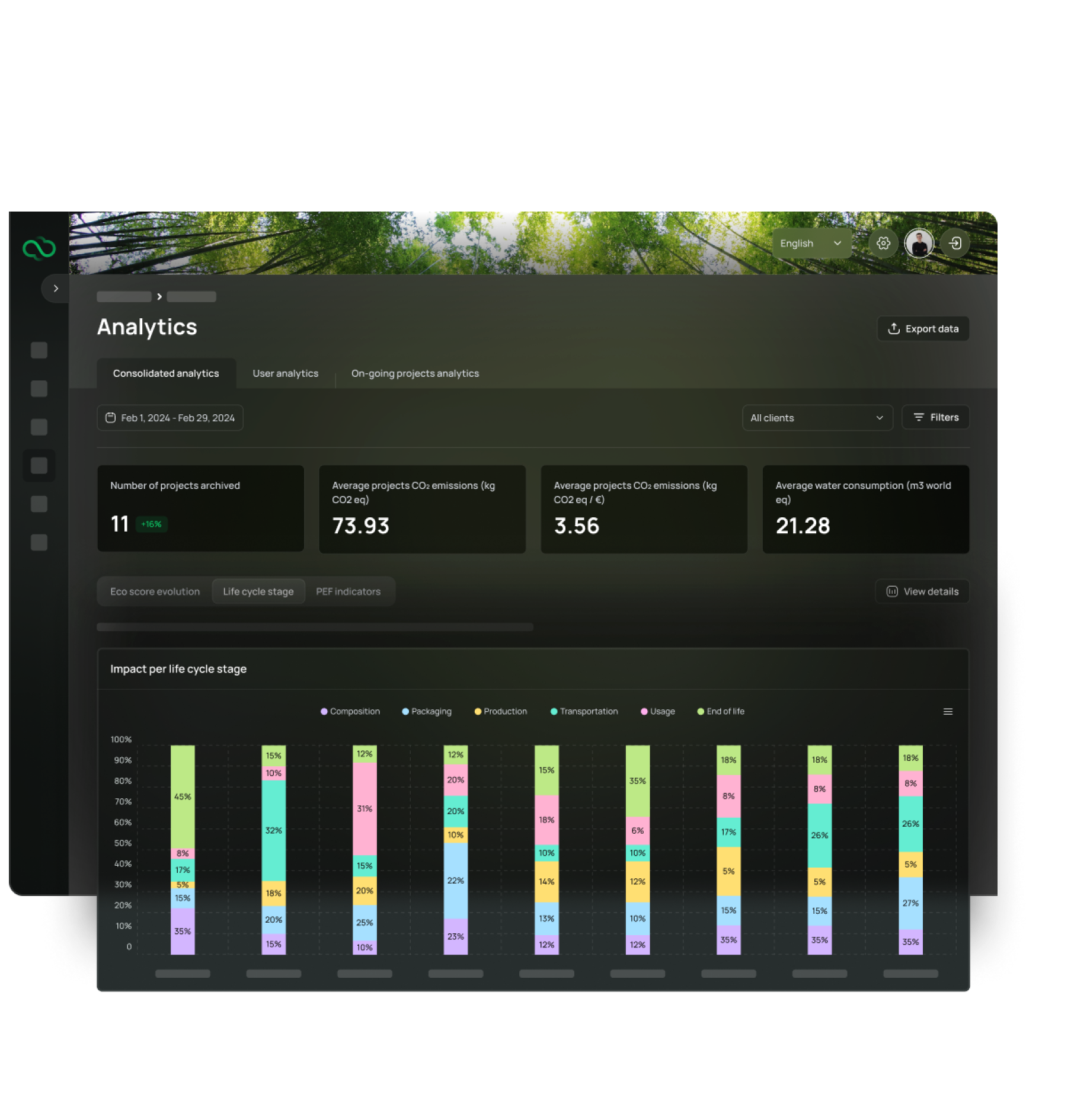 Monitor your environmental impact with an overview on upstream and downstream of your product manufacturing supply chain, using real-time metric visualization.